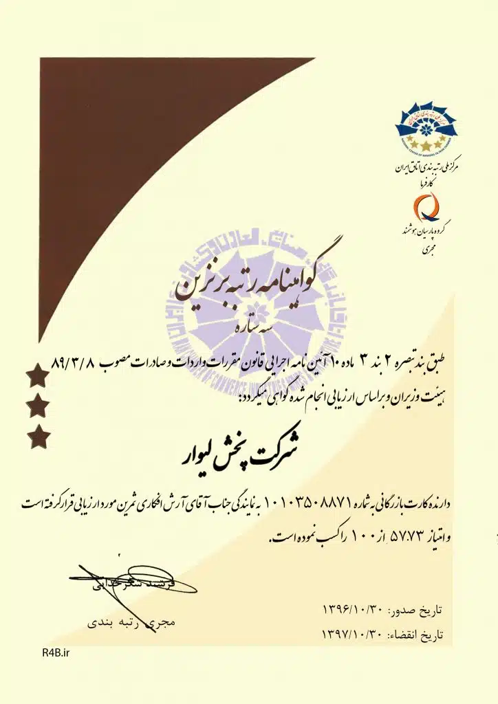 گواهینامه رتبه برنزین شرکت پخش ریوار