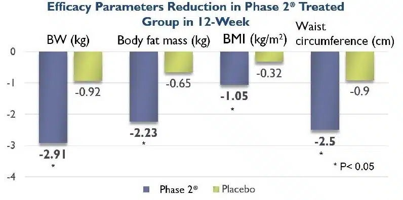 In a clinical study conducted on 123 participants, it was observed that after 12 weeks of taking Phase2®, they lost an average weight of 7 pounds, and 73.5% of them maintained this weight loss for 24 weeks.